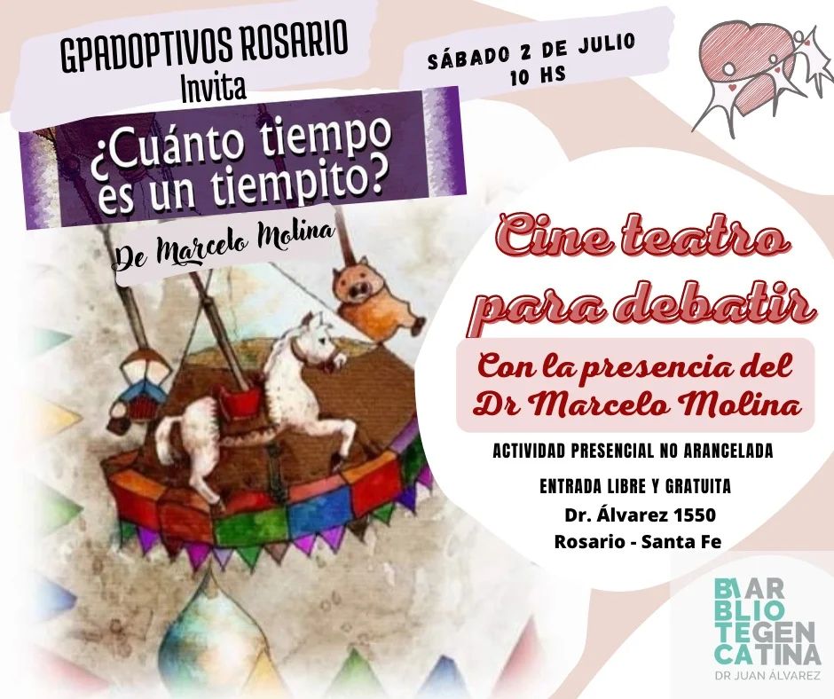 El Grupo de Padres Adoptivos y en Espera de Rosario invita a un «Encuentro presencial» junto al Dr Marcelo Molina donde se presentará su obra ¿Cuánto tiempo es un tiempito? en formato digital, con posterior debate.