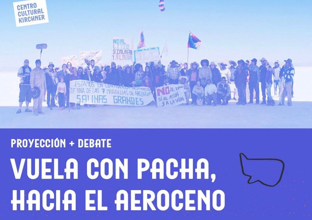 En coincidencia con el acampe del «Tercer Malón de la Paz» en Buenos Aires, en defensa de los territorios y derechos de las comunidades indígenas de Jujuy, se estrena este sábado en el Centro Cultural Kirchner (CCK) la película «Vuela con Pacha, hacia el Aeroceno (2017-2022), que registró el vuelo más sustentable de la historia de la humanidad, sucedido en 2020 en Salinas Grandes e incluyó al elevarse un mensaje escrito por los pueblos originarios: «El agua y la vida valen más que el litio».