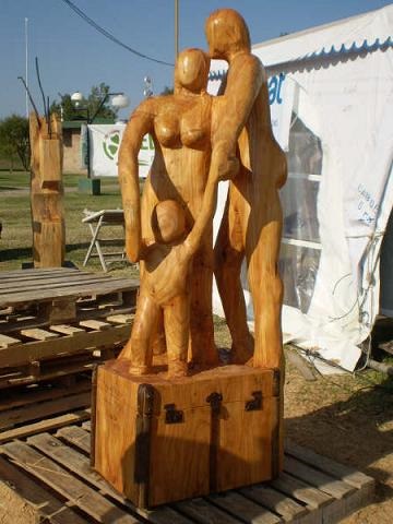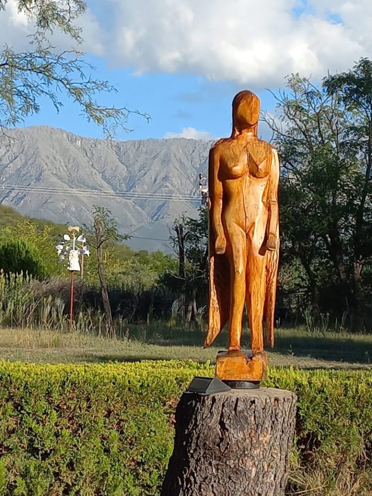 Y continuó: «Un día hubo una tormenta y cayeron muchos árboles en la plaza, fuí a ver a mi amigo con temor de encontrarlo en el suelo; pero seguía allí, de pié, erguido, solo una ramita quebrada. Pedí permiso y lo llevé a mi puesto; con un cuter la empecé a limpiar y a sacarle la corteza. Era una horqueta de unos 20cm. y, al terminar, descubrí una pequeña mujercita en mis manos. Fue mi primera escultura y, desde ahí, la madera me atrapó para siempre«.