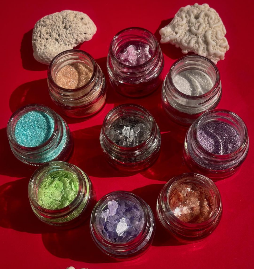 Después de una larga búsqueda, encontró a un productor que vendía Mica en hojuelas (lo sacan a través de minería sin explosión ni químicos), compró colorantes vegetales e inició su emprendimiento sustentable. Así nació su eco-glitter, una forma de brillar sin contaminar (@ecoglitter.karma).